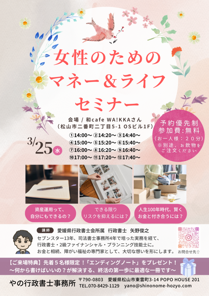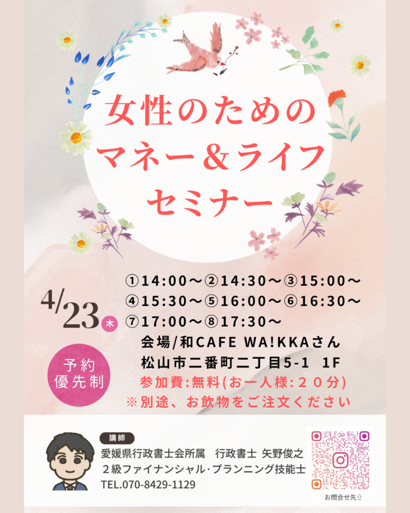 4月23日(木)に「女性のためのマネー&ライフセミナー」を開催します✨🌸